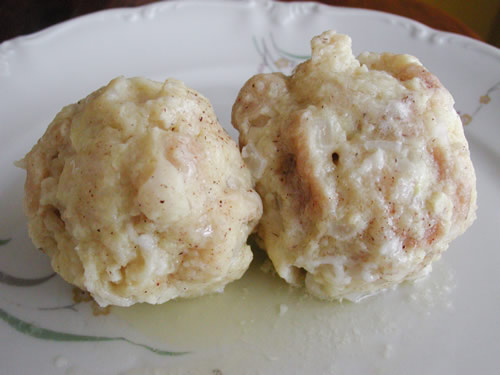 Soak stale bread in cold water for 15 minutes, then squeeze as dry as possible. To each pt. add 2 tablespoonfuls of milk, 1 well beaten egg, 2 tablespoonfuls of melted butter, 1/2 of a teaspoonful of salt and the same of sugar and sufficient flour to make of such consistence that the mixture will not fall apart when a small spoonful is dropped into boiling water. Have the water slightly salted and boiling hard. Test a spoonful of the mixture. When of the right consistency drop a number of spoonfuls at a time into the water and cook for 5 minutes. Lift out with a skimmer and arrange in a dish, keeping them hot over water until all are done.